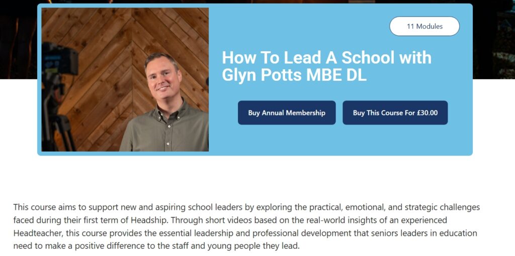 Glyn has a wealth of experience in this sector having been the Head Teacher of one a large secondary schools in Oldham. The course is 10 short videos covering keys areas and Glyn refers to the principles contained in Neil Jurd OBE‘s “The Leadership Book”.